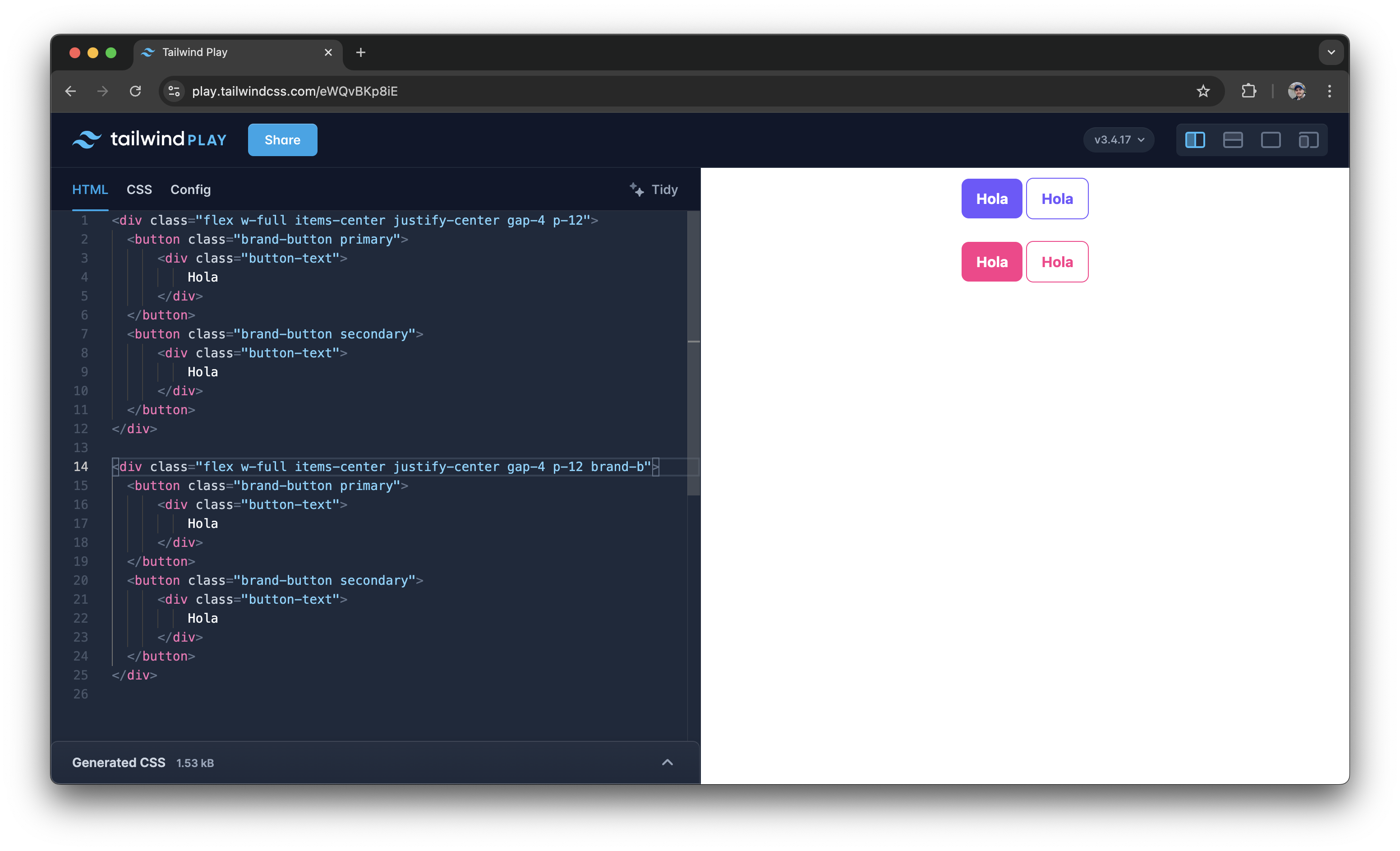 .brand-b { --color-brand-background-default: #ff368b; --color-brand-border-default: #ff368b; --color-brand-text-default: #ff368b; --color-brand-background-hover: #ff8caf; --color-brand-border-hover: #ff8caf; --color-brand-text-hover: #ff8caf; --color-brand-border-focus: #a80055;}Aquí la cosa se empieza a poner interesante.