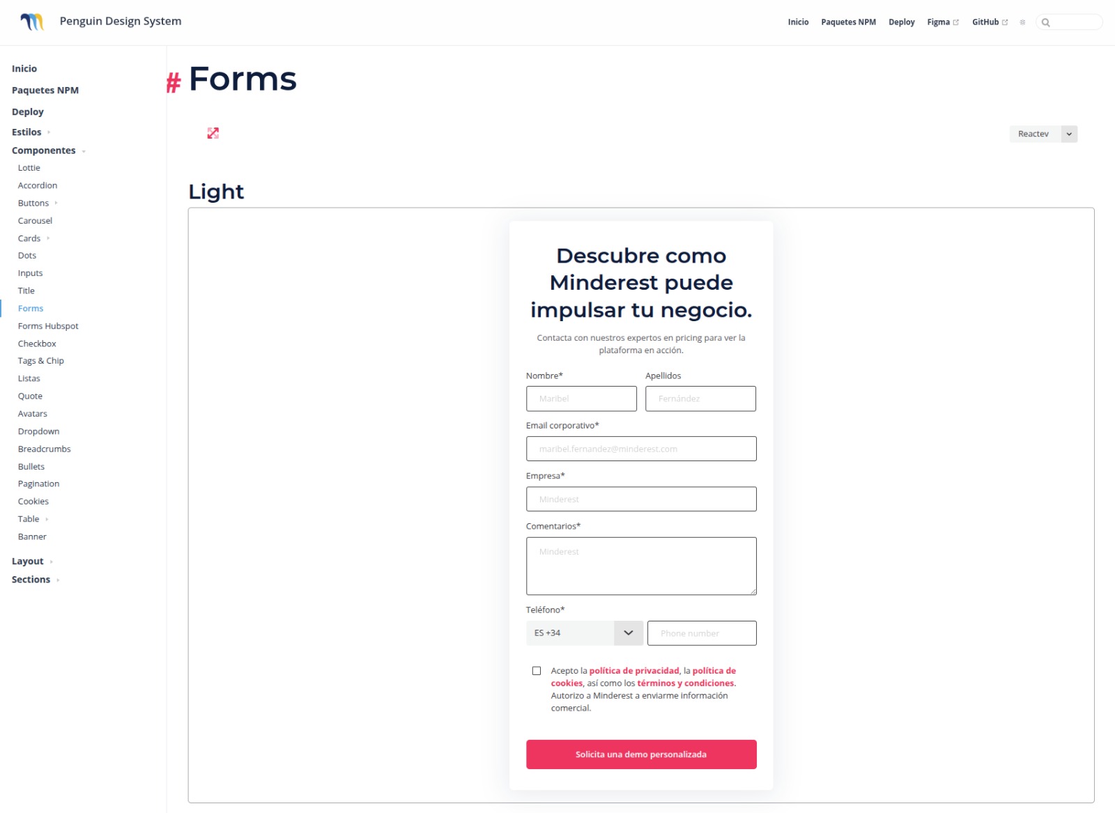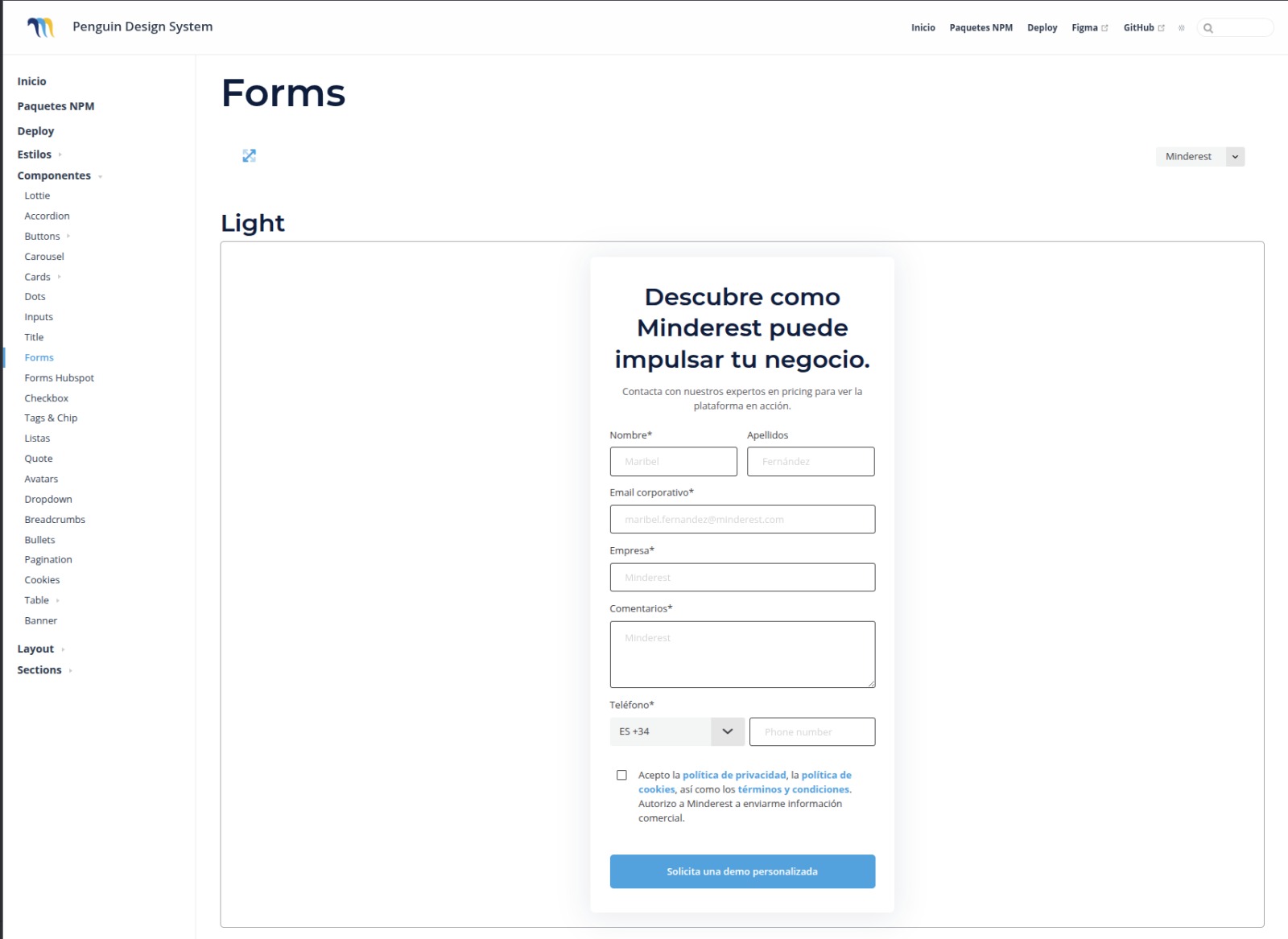 Este sería el formulario de contacto para demo que hay pero con el color de marca de Minderest.
