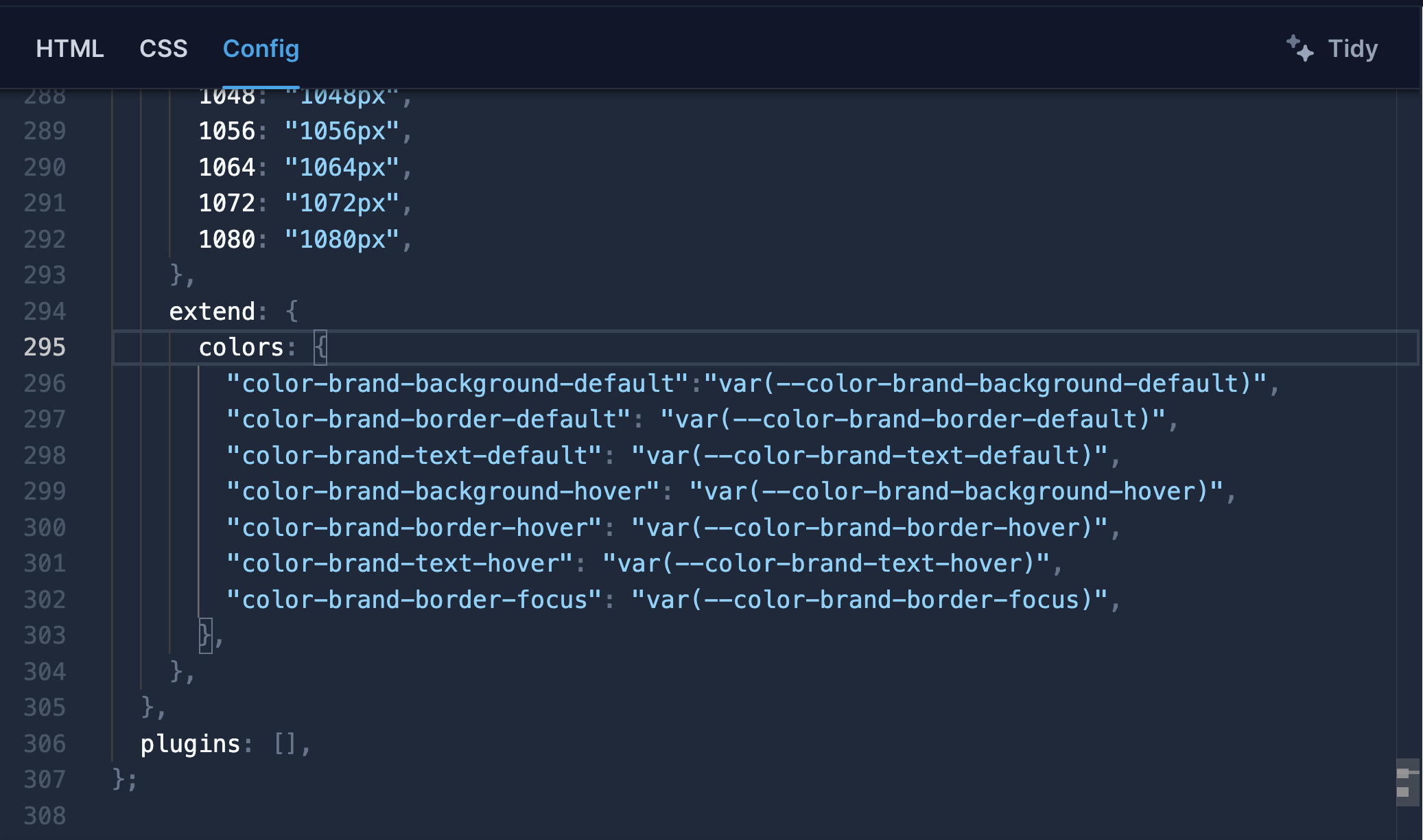 Toda esta teoría está genial pero teníamos que incorporar el concepto en el proyecto y cuanto antes. Estábamos usando Tailwindcss y si leemos su documentación, hablaban en varios puntos de usar variables de css. Tocaba jugar un poco con la idea a ver que podíamos hacer.