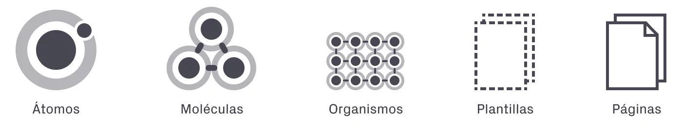 Resulta que la respuesta estaba en Vanesa Marcos Dávila, la diseñadora de producto que trabajababa en el equipo, que fué mi compañera durante muchos años y a la que considero mi amiga. Había estado claudicando cosas como Atomic Design y la idea de que en desarrollo también teníamos que centrarnos en desarrollar átomos, que pudieramos reutilizar en moléculas, que a su vez estas partículas formaran organismos y poder construir cada página a base de plantillas o elemenos más reutilizables y modulares que poder intercambiar.