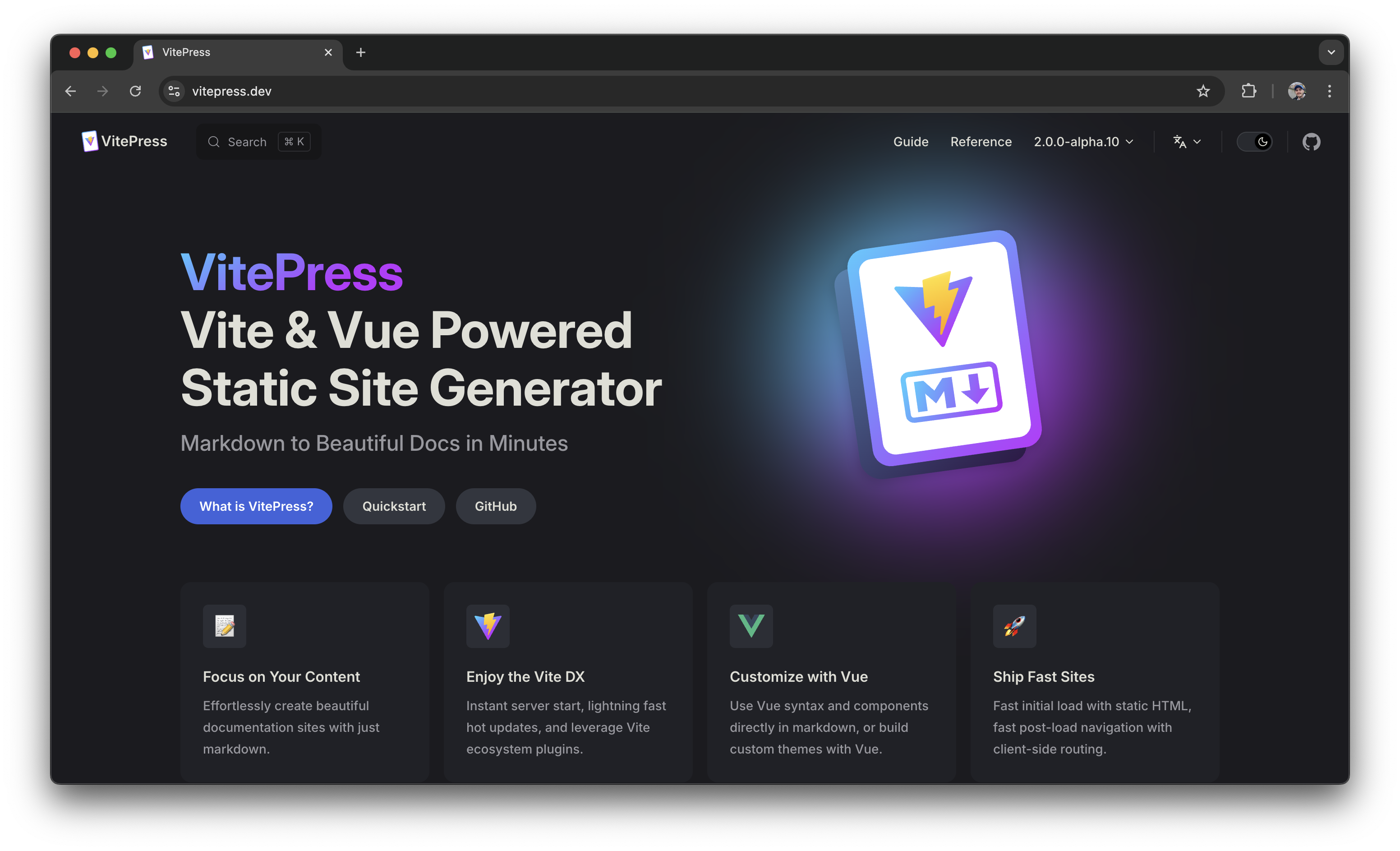 El sábado recordé que había leído sobre Vitepress en Twitter. Lo usaban varios proyectos open source del ecosistema de Vue para construir sus propias documentaciones. Al final era un paso más cerca de lo que necesitábamos, un sitio en el que los desarrolladores pudieran encontrar esos componentes ya hechos y listos para copiar.